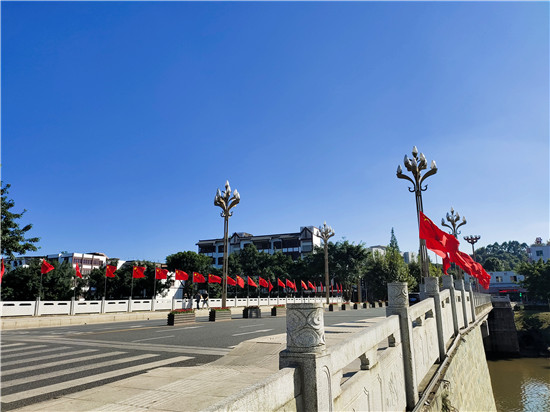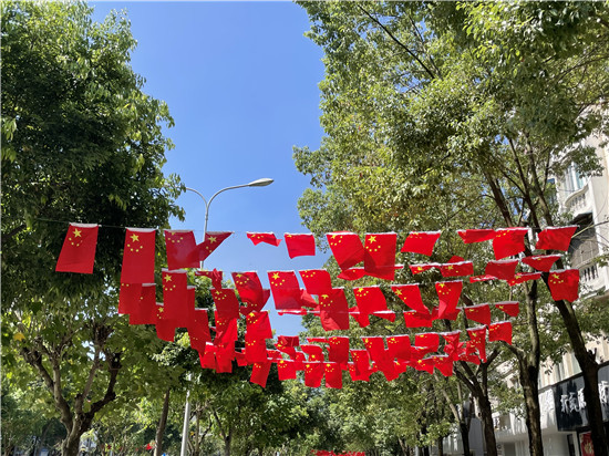 值得一提的是,城区不少住宅小区、商家纷纷在小区门口和店面范围内营造浓浓的国庆氛围,一面面鲜艳的五星红旗迎风飘扬,伴随着淡淡的花香,浓厚的节日气氛扑面而来。