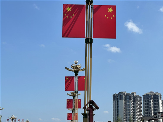 四川新闻网消息(郑佳洁 文/图)“如果信仰有颜色,那一定是中国红。”在国庆节到来之际,眉山全市开展了悬挂国旗工作和花卉景观布置工作,一抹抹中国红营造了浓浓的节日氛围。