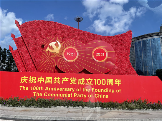 “今年是中国国产党成立100周年,也是新中国成立72周年,我们看到的是越来越强大的中国。在此借普天同庆的节日,祝祖国繁荣昌盛。”市民周先生在自己的小店门口装饰着,毫不掩饰地表达着自己的爱国情,小小的店里却营造了浓浓的节日氛围。