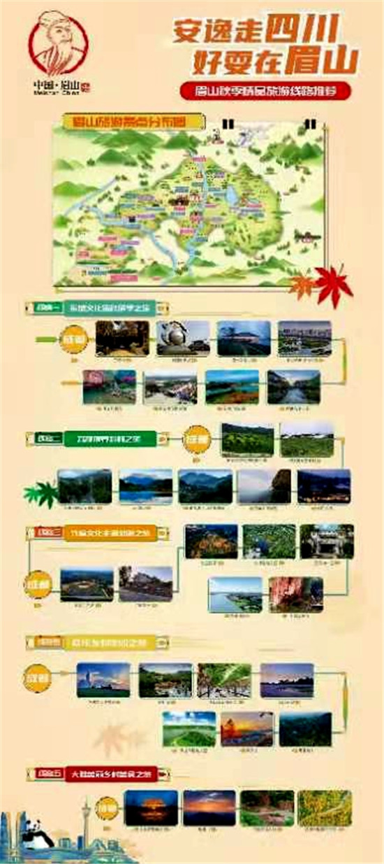 国庆假期秋高气爽,是出游的好时节,那么到四川眉山,究竟有哪些美景美食值得你去打卡呢?眉山市文广旅局通过本次摄影展不仅向来蓉住蓉市民游客推荐了眉山众多好玩的美景,还推出了东坡文化金秋研学之旅、森林康养彩林之旅、竹编文化非遗体验之旅、欢乐乡村丰收之旅、大雅美丽乡村美食之旅等5条眉山秋季精品旅游线路,供成都游客进行选择。