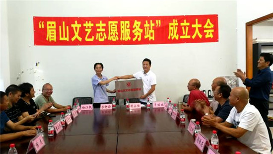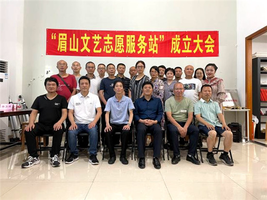 四川新闻网消息 旨在为眉山基层治理和乡村振兴贡献眉山文艺力量,9月28日,眉山首个文艺志愿服务站成立。眉山市书协主席团成员、文艺志愿者参加会议,眉山市文联党组书记李树伦,党组成员、专职副主席胡永恒,为眉山首个文艺志愿服务站授牌。