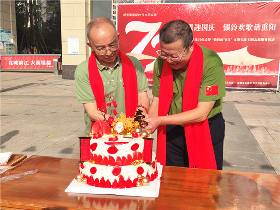 活动现场,老人们一起歌唱《今天是您的生日,我的祖国》、《幸福中国一起走》、《幸福长寿》等歌曲,歌颂祖国繁荣昌盛,祝愿伟大的祖国越来越好。
