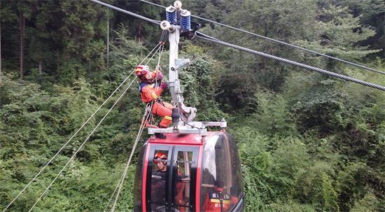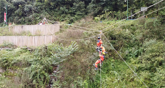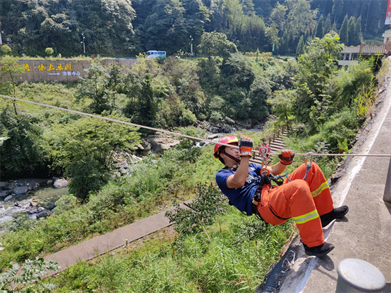 此次演练主要围绕缆车救援,腰包综合运用技术,“V”型对抗提拉,“T”型救援系统,孤岛救援,斜绳桥,横渡,水平垂直一体提调与转运等科目,演练依据实际从难从严开展。演练过程中全体指战员充分利用绳索下降技术,经过倍力紧绳、固定担架、调试平衡,对主绳、保护绳、引导绳各支点进行加固保护,利用“T”型救援技术、斜坡救援技术、横渡救援技术等多项措施进行多科目演练。