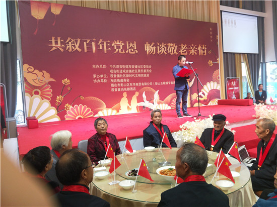 四川新闻网消息(何均荣 记者 李田)为回报社会,营造良好营商环境,传承中华民族尊老敬老的传统美德,10月14日,眉山市彭山区观音商会捐助观音铺社区老人欢庆重阳节。活动邀请了本社区七十岁以上的老人、五十年党龄、离退休干部共七百余人参加活动,区委书记为本次活动发来贺电,街道人大主席孙奕飞到场致辞,热烈欢快的场面让老人感受社会的温暖,度过一个欢乐、祥和、健康、文明的重阳节。