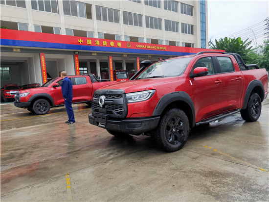 四川新闻网消息(余思潼 记者 李田)为切实加强基层基础设施建设,打好辖区灭火救援战斗攻坚战,提高队伍灭火救援战斗实力,更好的发挥大队在当前抢险救援工作的职能,进一步加强队伍正规化建设,10月21日上午,在一阵鞭炮齐鸣声中,两辆崭新的长城炮越野皮卡缓缓驶入青神县消防救援大队营区。