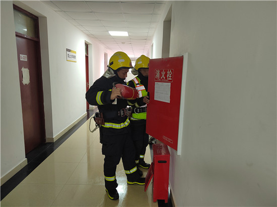 演练过程中,大对队员根据现场假定的灾情严格分工,按照灭火掩护、供水警戒等环节进行处置。整个演练过程中各战斗小组分工明确、协同配合,圆满完成了演练任务。演练结束后,结合近期全国较大火灾事故案例,值班班长根据校园防火、灭火、逃生的实际特点,用通俗易懂的语言向在场师生们讲授了消防安全基本常识、火场逃生自救和互救、初期火灾的扑救方法等消防知识,还就学生们提出的有关消防安全的常见问题进行了现场解答,使同学们了解了生活中如何避免火灾的发生以及在火灾发生时如何快速逃生等基本常识。