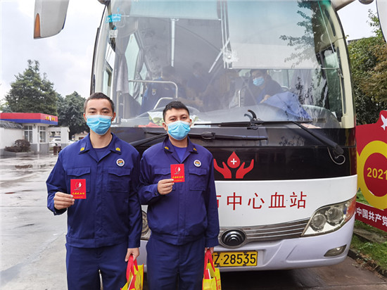 献血队伍中,有第一次参加献血的,也有每年坚持参加献血的指战员,无论年纪大小,职务高低,献血过程中,他们的脸上始终洋溢着质朴的笑容。那份踊跃献血的热情让献血车里充满着暖心的温情。他们用自己的实际行动体现出新时代“火焰蓝”的正能量和无私奉献精神。(洪雅县消防救援大队供图)
