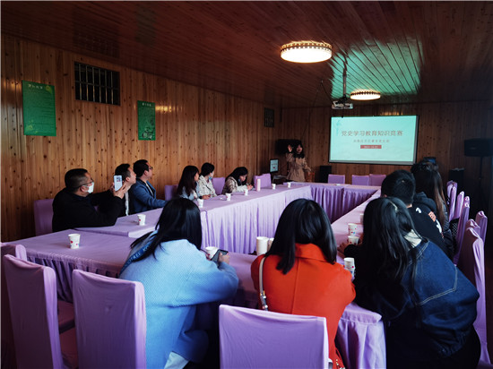 在知识竞赛环节,青年党员们分小组开展了党史知识竞赛,竞赛分为必答题、抢答题和风险题三个环节,现场竞争激烈、气氛活跃,大家充分调动知识储备“智库” 发挥想象,沉着应对,准确的答题让现场报以阵阵掌声,展现出洪雅经开区青年党支部成员良好的专业素养。