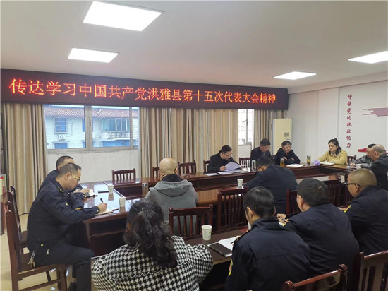 四川新闻网消息 近日,洪雅县综合执法局组织召开党组扩大会议,学习贯彻中国共产党洪雅县第十五次代表大会精神,中层以上干部参会。