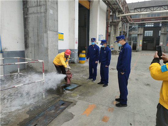 演练开始前,大队队员对单位的重点部位和周边环境进行了全面的熟悉,掌握了相关数据和水源具体情况。演练过程中,大队队员根据重点单位灭火预案的处置程序及要求,把灭火和抢救疏散被困人员作为演练重点,期间值班班长还根据实战情况下达应急事故假设,消防队员分工明确,配合默契,最终圆满完成演练工作。随后,队员们现场为厂内员工讲解了消防安全知识,详细阐述了安全生产的重要性及火灾发生以后的应急处置等内容。