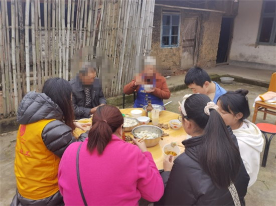 吃饺子寓意平安、吉祥、祈福。活动当天,爱心家庭成员带着温暖的祝愿,和区民政和街道社工站工作人员一道,分别于上午和下午来到失独老人家和留守老人家中,向老人表达了衷心的祝福和问候,并同老人促膝谈心,嘘寒问暖,了解他们的生产生活和身体健康情况,查看了他们的居住环境。每到一处,工作人员都用笔记下了他们最现实、最急难需要解决的问题。 随后工作人员拿出饺子材料和餐具,同老人一起拌馅包饺子,大家围成一团,在欢声笑语、其乐融融的氛围中,一个个像模像样的饺子整齐地摆在了案板上。