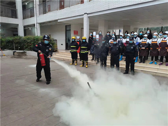 四川新闻网消息(朱林玉 记者 李田)冬季是火灾易发、高发的季节。学生食堂及宿舍内部各种用火、用电、用油设备较多,是学校安全防火的重点部门。为进一步增强食堂及宿舍工作人员的消防安全意识,提高其预防火灾、处置火灾的能力,使“预防为主,防消结合”的方针在学校得到更好的贯彻落实,12月6日,仁寿县职业教育中心组织学校食堂宿舍工作人员开展消防安全知识培训及消防演练工作。