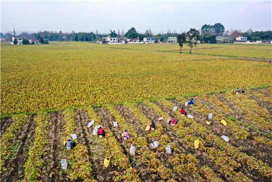 四川新闻网消息(温选鹏 盛晓波 记者 李田)12月15日,在眉山市彭山区谢家街道汉安村,大片成熟待收的泽泻在冬日暖阳的照耀下格外喜人。