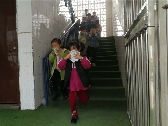 演练开始,随着警报声响起,演练正式拉开序幕。学生们在老师的带领下,选择了最近的逃生出口,有秩序地进行疏散逃生,大家在逃生时用湿毛巾或湿手帕捂住口鼻,弯着腰撤离火灾现场,迅速到达安全地点。参加演练的学生们严肃认真,服从指挥,不抢先,不拥挤,不推搡,整个演练过程井然有序。