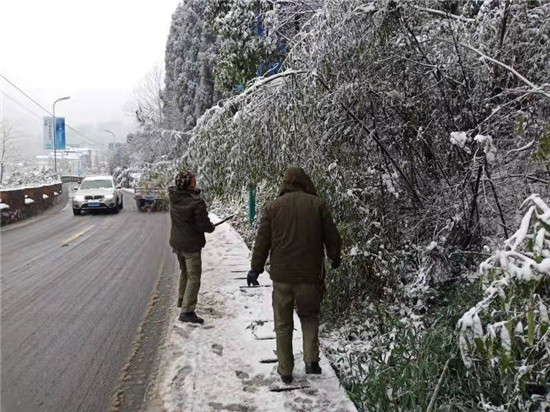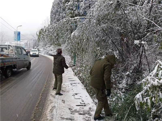 赏雪、耍雪、泡温泉成了游客们喜爱的游乐项目。为确保广大游客行走、驾车安全,七里坪管委会多措并举为景区加强各种安全措施,及时对经西环线22道拐进入七里坪的道路进行封闭,疏导车辆绕行。组织人员对旅游道路开展除冰除雪,及时清理道路两侧被冰雪压倒树木,保障道路畅通。组织人工沿途撒放工业盐进行人工融冰;安排防滑链服务团队进行驻点值守,为车辆加装防滑链,设点为广大游客提供暖心服务,确保进入景区游客的安全感、体验感,提升游客的满意度,让大家乘兴而来,尽兴而归。(洪雅七里坪管委会供图)