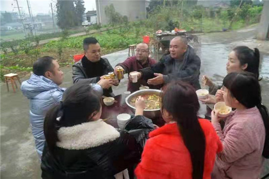 席间,董耀军和亲朋好友、左邻右舍一起在轻松喜悦的氛围中忆过去、话未来。你一言我一语,一顿美味的杀猪肉就着大家对过去的追忆和对未来的期盼,越吃越过瘾。在新的一年里,他们将用自己的勤劳和智慧将日子过得更加红火。(洪雅县委宣传部供图)