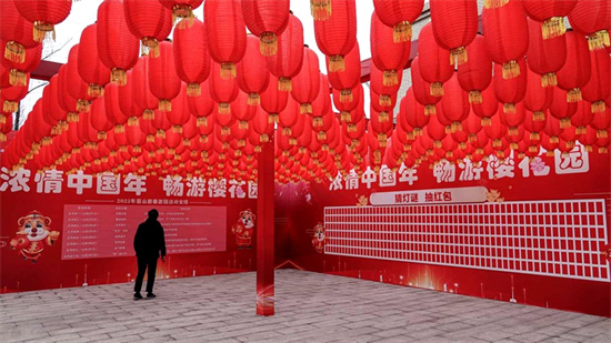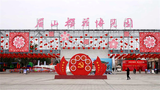 在眉山樱花博览园,只见南大门上大红灯笼高高挂起,两边的樱花树上也都挂满了红灯笼,年味浓浓的美图吸引不少游客。