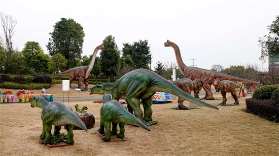 打卡樱花博览园“恐龙嘉年华” ,可以见到翼龙、腕龙、异特龙、甲龙、鱼龙迅猛龙…… 近百种恐龙栩栩如生齐聚在这里。
