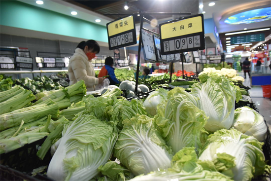 在北京联华超市洪雅店,超市里已早早地将空间布置成喜庆的红色,货架上米面粮油、生鲜蔬菜、干果饮料、糖果饼干等商品琳琅满目,前来购买生活物资的顾客络绎不绝。
