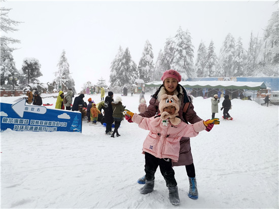 游客贺浏瑶说:“来到瓦屋山,可以体验很多项目,比如说可以滑雪,还有雪地摩托也可以亲近大自然。还可以与一些动物接触,感觉很不错。”