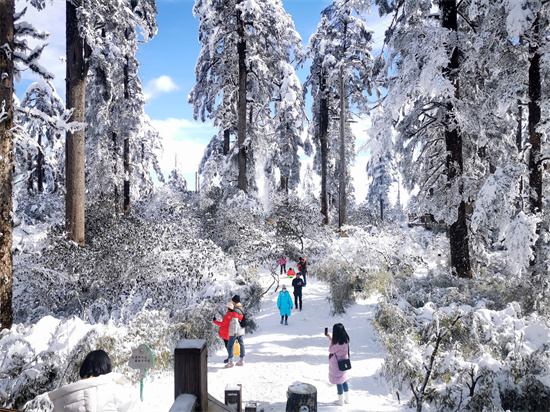 不仅如此,瓦屋山冰雪游还有多种玩法。漫步林海雪原,赏万千雪杉、兰溪巨大冰瀑、冰帘、冰挂、冰柱、雪凇、雾凇、鸳鸯池冰封现象等奇观;偶遇灵猴、小熊猫、小松鼠、小鸟等各种野生小精灵;观绝美日出、云海、佛光,远眺群山峻岭,感受最美桌山的冰雪童话胜景。2月4日当天,景区还组织游客开展“瓦屋冰雪·助力冬奥”活动,现场向游客发放冬奥主题手旗,大家游瓦屋、赏冰雪、参与冰雪运动,一起为北京冬奥加油助力。