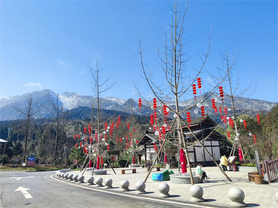 还有一些游客漫步游行:在康养小镇饱览古色古香的川西吊脚楼风韵,和景观雕塑拍照打卡,在景观大道风车处观赏成片雪景,在溪谷栈道体验“森呼吸”……