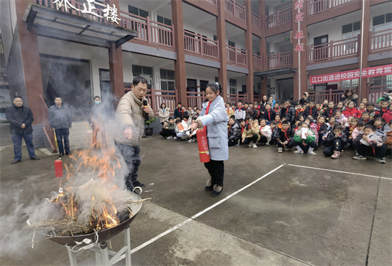 江口街道应急办工作人员郑德平首先为师生讲解了预防火灾发生的重要性以及预防火灾发生的方法,火灾发生后应该如何逃生、如何拨打“119”电话报警等消防安全常识。然后示范了灭火器使用方法,邀请学生现场进行了灭火操作。