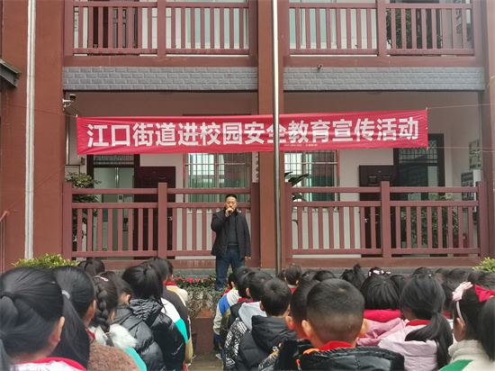 江口街道应急办主任潘楠对全体学生进行了日常生活中的安全用电常识、家用电器安全使用方法、遇到紧急情况如何处理等安全用电知识方面的教育。