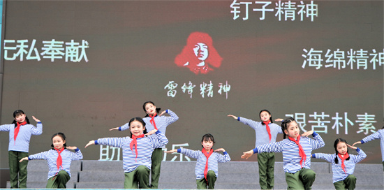 “学习雷锋好榜样,忠于革命忠于党……”在朗朗上口的歌声中,孩子们用舞蹈表达着对雷锋的敬意,学习榜样的事迹,践行榜样的美德。舞台上,孩子们表演十分投入,配合默契,用铿锵有力的肢体语言把雷锋精神展现得淋漓尽致。