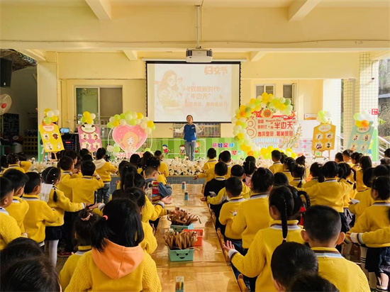孩子们发自内心的为老师们唱起了感恩的歌,并为现场的老师献花,还亲手为自己的女性长辈制作节日礼物。