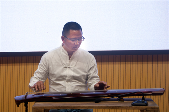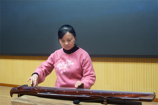 最后,古琴协会的张声培和何莉两位老师还为同学们现场演奏了两首曲目:《桃园》和《关山月》。两位老师的古琴演奏苍茫清幽、深沉悠远。浓浓古风,余味无穷。为全体师生奉上了一场精彩的视听盛宴!(供稿:东坡区苏洵中学)