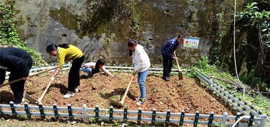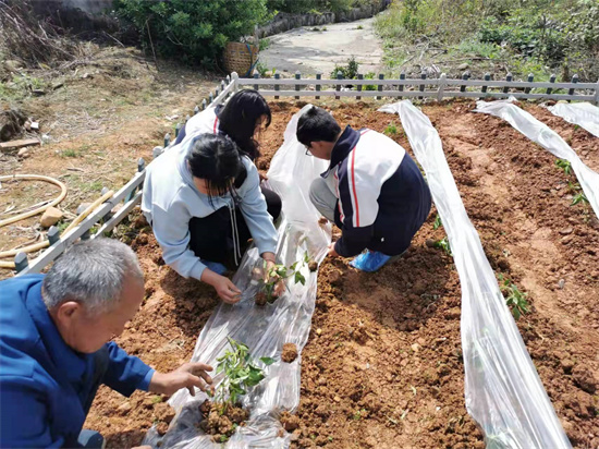 种植活动中,该校负责农作物种植的郑师傅在进行了理论教学后,学生们动手完成除草、翻地、铺地膜、种植、浇水、施肥等一系列劳动,在“开心农场”种下了又一批新的“生命”。