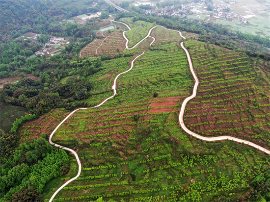四川新闻网消息4月5日,在眉山市洪雅县将军镇真武山梨园基地,只见山上沟渠纵横交错,滴灌、喷灌设施齐全,生产便道开阔整洁,梨树已开始挂果。
