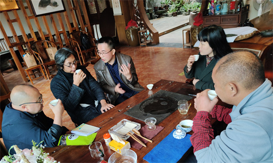 漫步在柳江古镇,郭羿承博士触动很深,悠久的历史文化、保存完好的古迹,淳朴的民风都让他感慨不已,在川西南的山区拥有这样一座生态古镇,以及沿河的吊脚楼,贯穿全镇的过街水系都是珍贵的文化遗迹,能够得到保护性的开发实属不易。郭博士前往柳江山庄、高家庄民宿客栈,与客栈负责人、洪雅县茶叶流通协会制茶师高建华和黄志勇交流制茶技艺,对洪雅县农家手工茶的品质、口感赞不绝口。郭博士说,柳江古镇自古商贸云集、历史文化丰厚、处处都是微景观,美妙极了!像柳江这样的古镇,一定要珍惜好、维护好、应用好,作为美学和文化工作者,他还要把柳江古镇修饰好、包装好、宣传好!