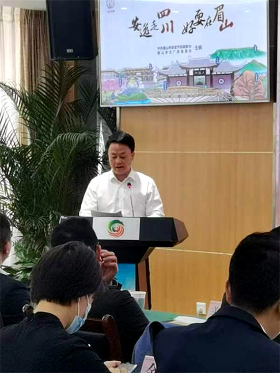 通气会上,眉山市文化广播电视和旅游局以“ 安逸走四川 好耍在眉山 ”为主题, 结合正在开展的2022“ 寻美乡村 乐游眉山 ”大型乡村旅游季活动,策划整合超百项文化旅游产品,面向国内外游客集中进行全面发布。