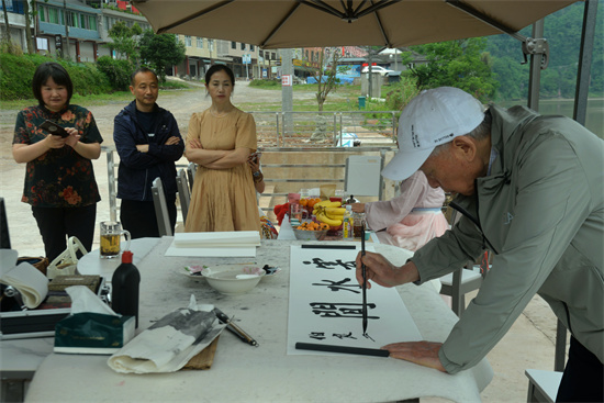 仁寿籍军旅书法家魏伯良在这里即兴创作,与游客一起参与洪雅地方端午民俗文化活动体验,他们一起到农户的茶园里采夏茶、竹林里挖竹笋,一起在民宿院落里挂艾草、做雄黄酒、书法创作等,一起坐游船览青衣江小三峡--桫椤峡,品端午手工茶……大家盛赞:天府水天堂,人间槽渔滩。