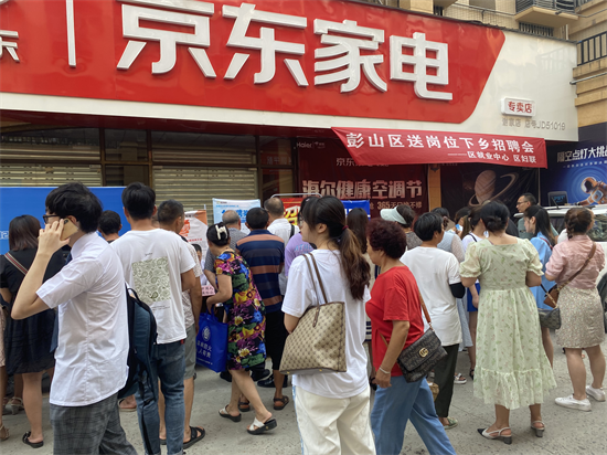 四川新闻网消息 为方便高校毕业生、农民工下岗失业人员等各类群体就近求职就业,7月14日上午,在做好疫情防控前提下,由彭山区就业服务中心举办的“送岗位下乡”主题招聘会走进谢家街道,将就业岗位送到群众家门口、就业政策送到群众手中。