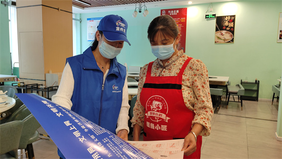 在恒和国际小区和人民医院宿舍,洪雅县委宣传部的工作人员身穿蓝马甲、头戴“小蓝帽”,化身网络安全宣传员,给小区内的居民通过摆放展板、发放宣传资料的方式开展宣传活动。宣传员走上街头,为从业经营者和居民宣传网络安全知识,提高网络安全意识。