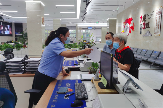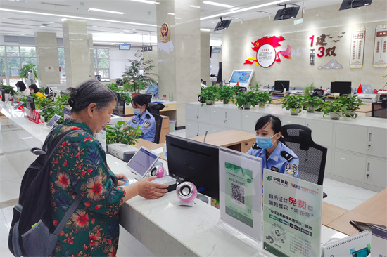 9月6日下午,洪雅县政务服务中心大厅内整洁明亮,民辅警身穿制服忙着办理相关证件业务。
