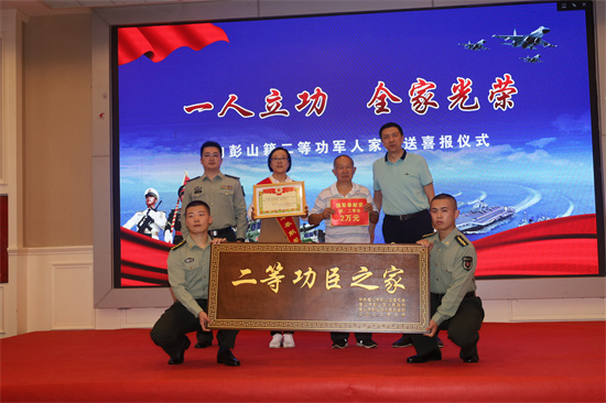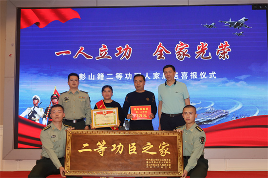 一份喜报,承载着荣耀,鼓舞着军心,慰藉着军属,凝聚着党和政府的殷切希望。“强军奉献奖”的颁发,让立功受奖官兵及家庭充分感受到来自全社会的温暖,增强军人及家属的光荣感、自豪感、使命感,激励广大官兵崇尚荣誉、建功军营、再创佳绩,激发军属继续支持国防军队建设,营造全社会关心国防、尊崇军人、关爱军属的良好氛围。(供稿:彭山区退役军人事务局)