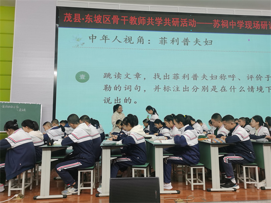 上午,茂县青年骨干教师团及苏祠中学办学共同体教师走进苏祠中学七、八、九年级观摩语文、数学课堂。