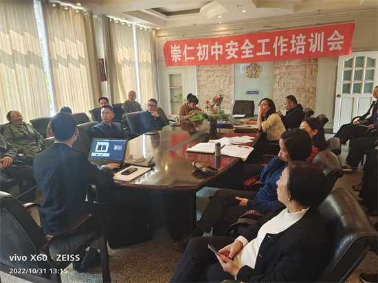 四川新闻网消息 为使全体师生了解消防基础知识,提高安全防范意识,增强自我保护能力。东坡区崇仁初中于2022年10月31日在学校小会议室里对全体教师开展了消防知识讲座,并于11月9日大课间时间,开展了消防应急疏散演练活动。