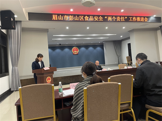 会议上,学习食品安全“两个责任”会议精神;部署全区建立健全分级精准防控、末端发力终端见效的工作机制,进一步压紧压实食品安全属地管理责任和企业主体责任,着力提升彭山区食品安全监管力度,强化科学规范管理,严把食品安全质量关。