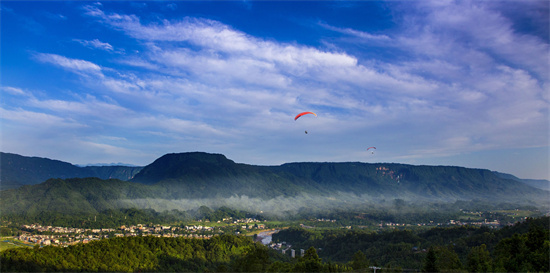 依托独特的自然生态,近年来,度假区特色森林康养游、欢乐亲子度假游、休闲度假游名声大起。度假区内滑翔伞基地、草坪露营区、玻璃栈道、康养中心、花溪骑行道等各种娱乐体验项目纷纷落地,深受旅客喜爱。