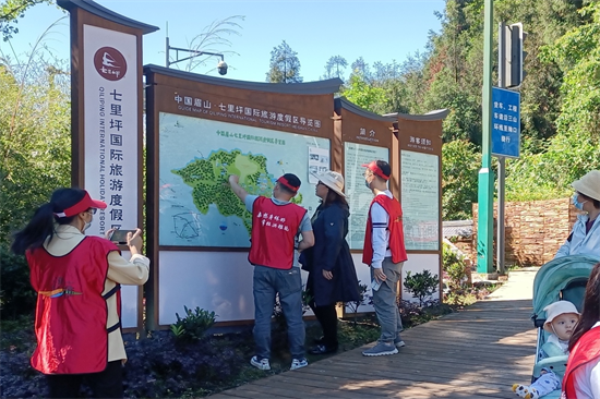 每逢节假日,在洪雅各大景区、重要路段,随处可见一抹抹耀眼的红色——洪雅县旅游服务志愿者。他们热情地为游客提供贴心服务,积极引导和提醒游客安全、健康、文明旅游。