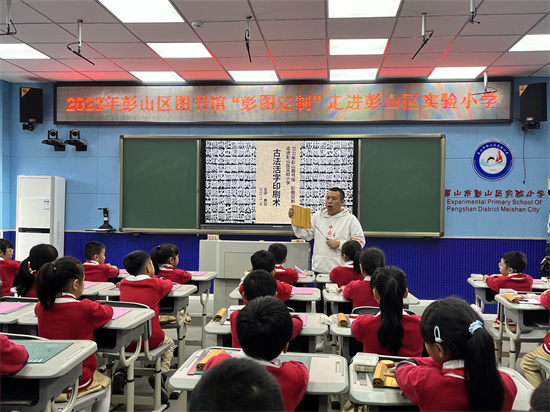 四川新闻网消息 “小朋友们,你们知道图画、文字、故事、史实等内容如何记录传承吗?现在有复印机,在古时候,人们又靠什么来复印文字或者图案呢?”……11月18日,眉山市彭山区图书馆组织当地非遗民间艺术家协会志愿者走进该区实验小学,开展了一场“彭图定制”系列活动。为孩子们讲解传统印刷术的历史,重现印刷文明的演进历程,演绎真正的活字印刷术,让大家感受中国传统文化魅力。
