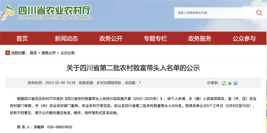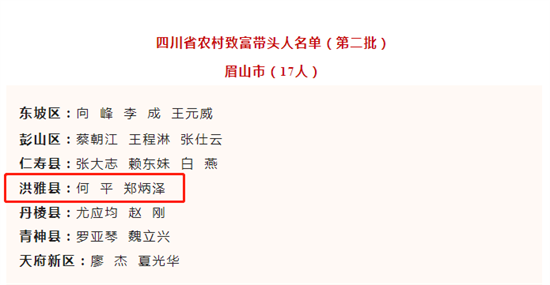 四川新闻网消息 2月6日,四川省农业农村厅公示了四川省第二批农村致富带头人名单,洪雅县2人上榜,何平就是其中之一。