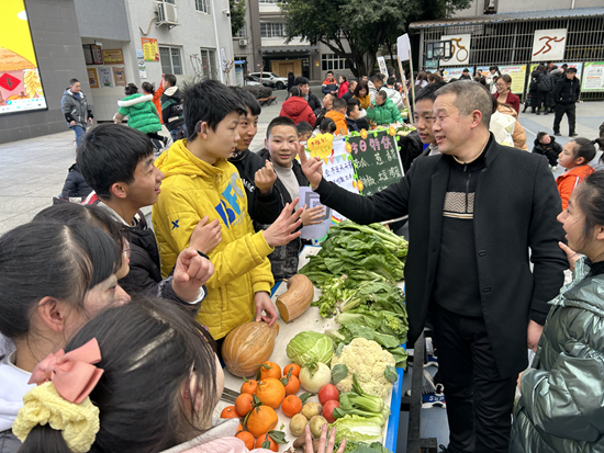 各位“摊主”使出浑身解数,“快来买,新鲜的蔬菜!”聋生班的同学用手语热情地向来往的“顾客”推销自家蔬菜。“瞧一瞧,看一看,买菜有惊喜哦!”培智部的爱心小店推出买菜免费套圈活动……现场热闹非凡,师生满载而归。