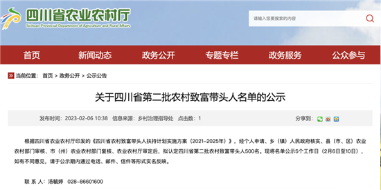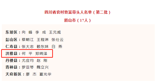 四川新闻网消息 2月6日,四川省农业农村厅公示了四川省第二批农村致富带头人名单,洪雅县2人上榜,郑炳泽就是其中之一。