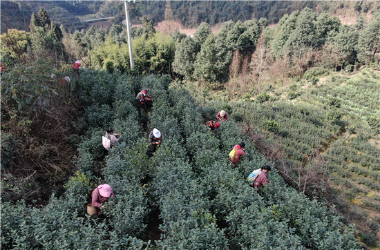 四川新闻网消息 春节过后,气温回暖。近日,在四川省眉山市洪雅县中山镇前锋村,茶农们正忙着采摘新春第一捧新茶。